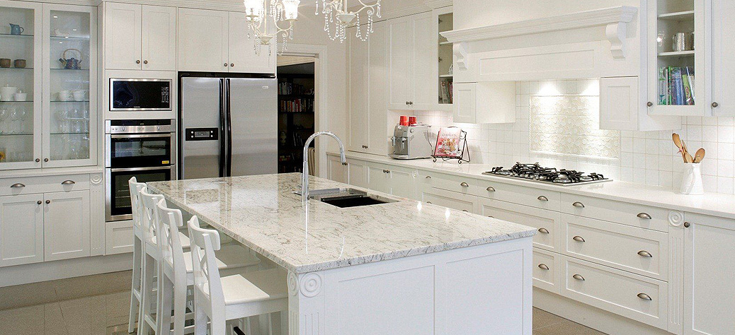 3、開裂 人造石產品容易引起開列的位置一般在轉角、爐灶臺、水盆口、前裙、后擋水等處。一般而言,臺面設計時所以轉角均應保持25mm以上的圓角;灶口、盆口四邊應用鑼機直邊;前裙、后擋水下擋條應粘接牢靠,禁在開孔位、轉角處接駁、櫥柜安裝要水平、臺面支撐跨度最好不要超過600mm,超過600mm跨度不易設置為占板位。